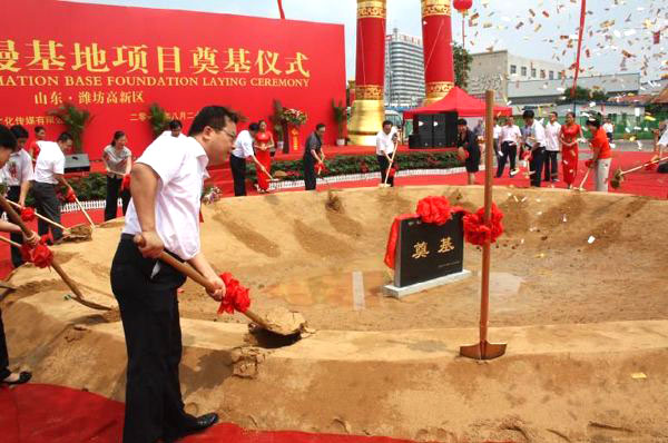 儀式上,山東中動(dòng)文化傳媒有限公司董事長(zhǎng)李總介紹了項(xiàng)目情況。據(jù)了解,該公司是高新區(qū)自主培育的高成長(zhǎng)性企業(yè),經(jīng)過多年發(fā)展,目前已成為新信息產(chǎn)業(yè)的龍頭企業(yè)和文化產(chǎn)業(yè)的領(lǐng)航者,在宣傳推介濰坊、彰顯文化魅力等方面發(fā)揮了積極作用。此次奠基的動(dòng)漫基地項(xiàng)目,是高新區(qū)實(shí)施新興高端產(chǎn)業(yè)發(fā)展“63513”全省示范工程的重點(diǎn)項(xiàng)目,總投資4.5億元,建筑面積8萬平方米,主要建設(shè)集動(dòng)漫大廈、動(dòng)漫外包、出版發(fā)行、研發(fā)中心、培訓(xùn)實(shí)踐、衍生品交易于一體的大型綜合性動(dòng)漫產(chǎn)業(yè)基地,力爭(zhēng)項(xiàng)目建成后5年內(nèi)發(fā)展入駐企業(yè)過百家,帶動(dòng)就業(yè)3000人以上,基地年產(chǎn)值超過15億元。