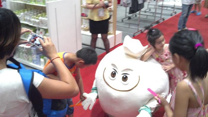 展會上除了著名動畫《米老鼠》、《海賊王》、《櫻桃小丸子》、《熊出沒》、《阿貍》等,還有兩個亮瞎小編眼睛的“美食”形象,就是“壽司武藏”、“包子包強(qiáng)”。