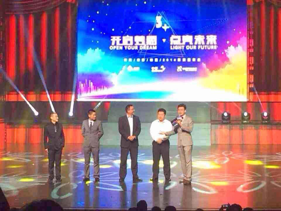 (左起)鄂總、李總、謝總、趙總被主持人請(qǐng)上舞臺(tái)