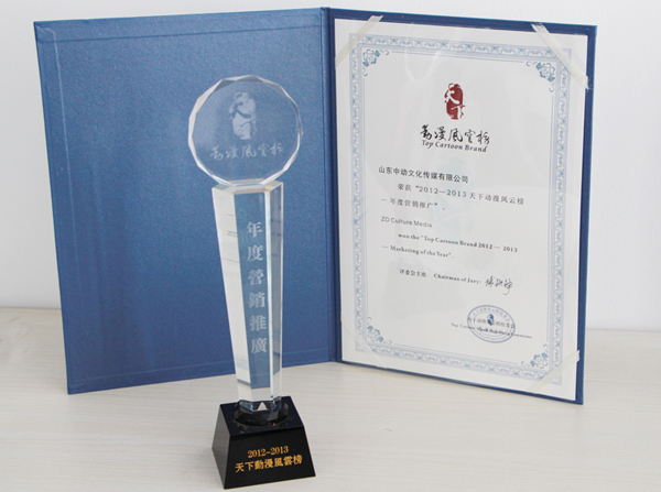 山東中動(dòng)文化傳媒有限公司 榮獲“2012-2013天下動(dòng)漫風(fēng)云榜---年度營(yíng)銷推廣團(tuán)隊(duì)”